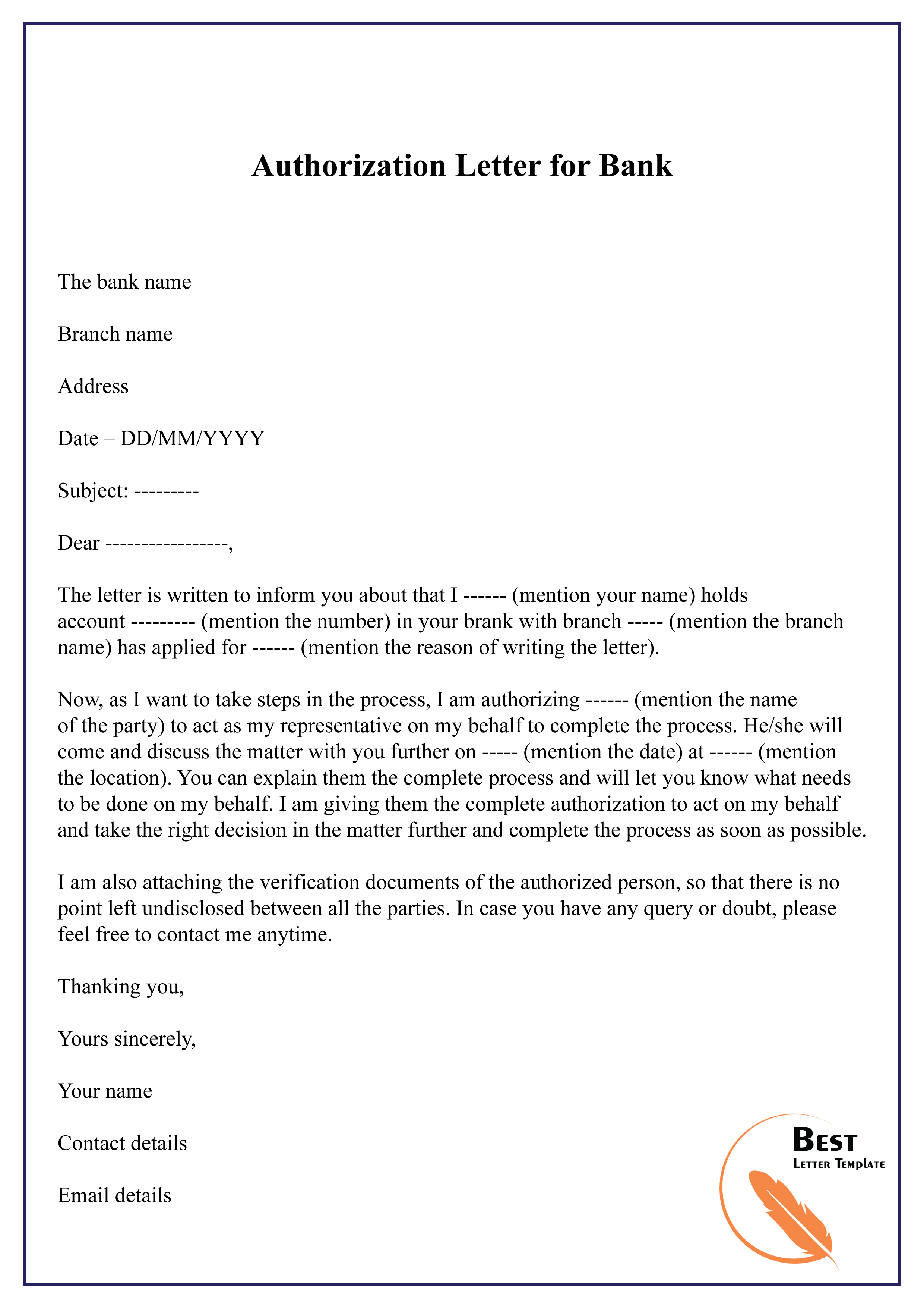 Authorization letter for bank-01 – Best Letter Template