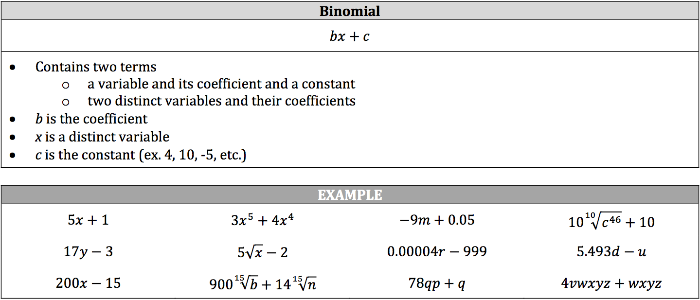 Binomial Definition (Illustrated Mathematics Dictionary)